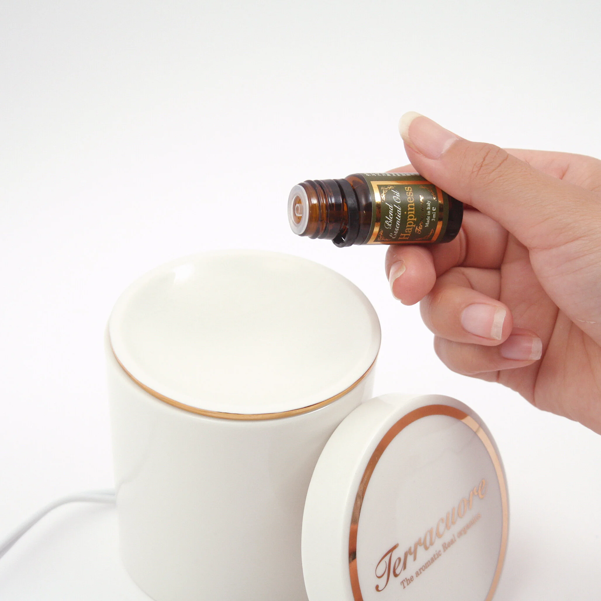 Dieses Aromalicht wurde für Terracuore, IDEAs Bio-Kosmetikmarke, gestaltet. Terracuore bietet ein breites Spektrum an biologischen Schönheitsprodukten an. Ätherische Öle können in dem oberen Schälchen erwärmt werden und verbreiten so einen angenehmen Duft im Raum. Das schlichte und elegante Design hebt deutlich, aber auf eine ganz natürliche Art und Weise, die goldene Linie, das Markenzeichen von Terracuore hervor. Das keramische Aromalicht verbreitet nicht nur einen angenehmen Duft, sondern auch ein wohlig warmes Licht und macht Entspannen mit Aromatherapie zu einem sinnlichen Moment.